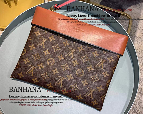루이비통 M64035 모노그램 캔버스 카키 레더 포쉐트 튈르리 클러치