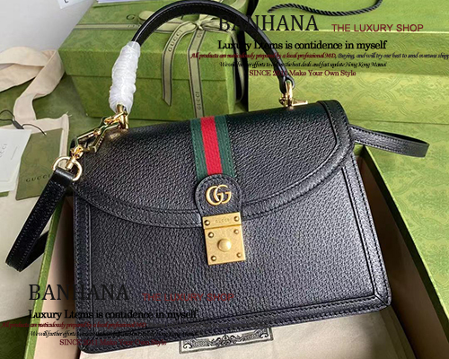 구찌 오피디아 블랙 레더 탑 핸들 백651055