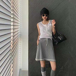톰브라운TB 여름 민소매 사각 스트라이프 라운드 남녀 캐주얼 반팔 티